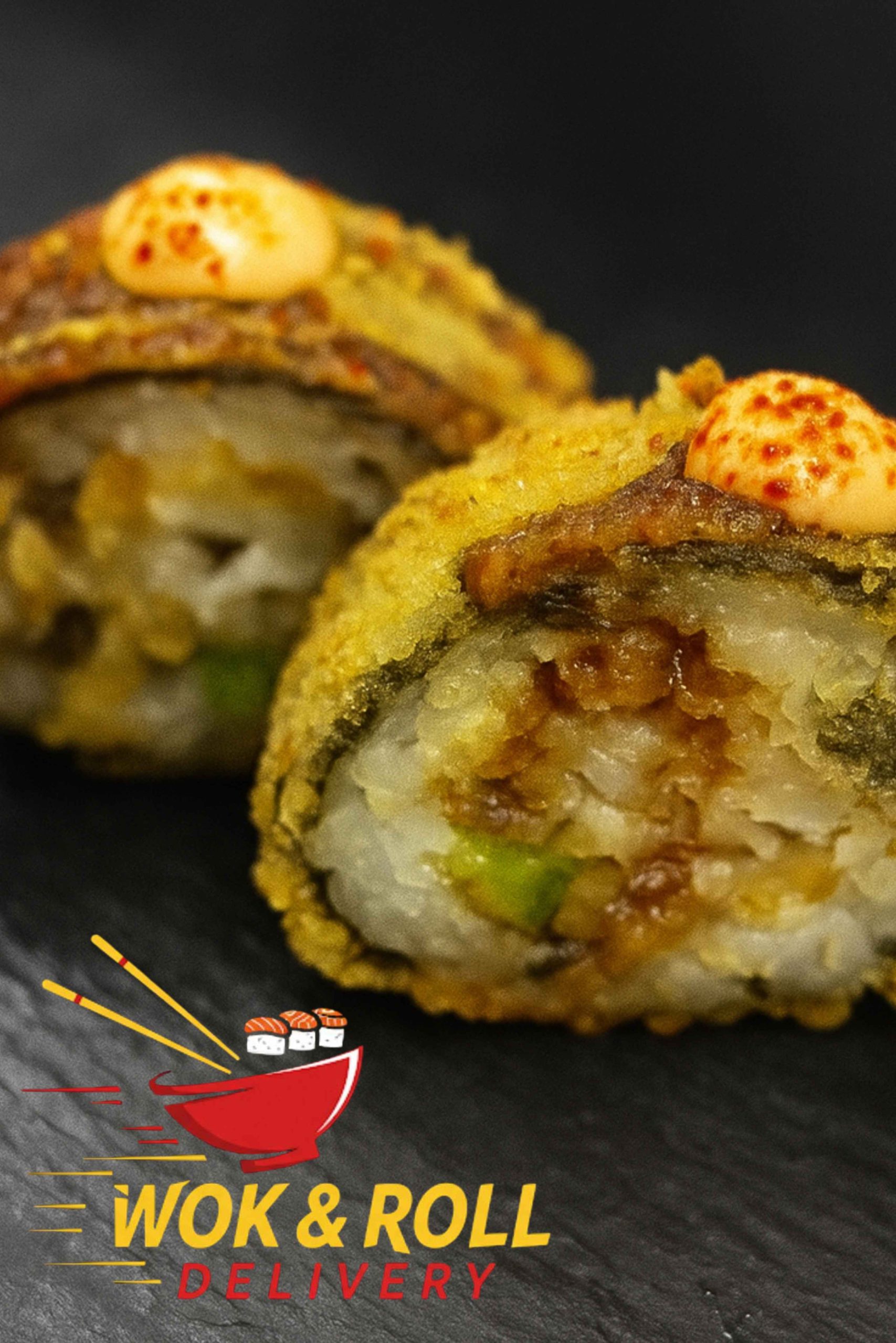 Un roll frito con textura dorada y crocante que envuelve ingredientes frescos como tilapia, aguacate, queso crema, y ajonjolí para un toque crocante.